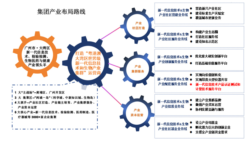作為廣州開發(fā)區(qū)最早成立的區(qū)屬一級企業(yè)之一,高新區(qū)集團(tuán)扎根于黃埔區(qū)、廣州開發(fā)區(qū),立足于"兩軸(建設(shè)、服務(wù))四輪(開發(fā)、城更、產(chǎn)服、金融)驅(qū)動產(chǎn)業(yè)(新一代信息技術(shù)、檢驗(yàn)檢測、醫(yī)療器械、生物醫(yī)藥等)在高質(zhì)量發(fā)展道路上邁向新征程"的經(jīng)營發(fā)展理念,定位于產(chǎn)業(yè)全周期的健康生活引領(lǐng)者、區(qū)域全覆蓋的美好城市建設(shè)者、服務(wù)全方位的創(chuàng)新社區(qū)締造者,有序推進(jìn)項(xiàng)目建設(shè)和現(xiàn)代服務(wù)的同時,積極加強(qiáng)與國內(nèi)、國際創(chuàng)新要素密切聯(lián)動、優(yōu)勢資源合理配置,打造新一代信息技術(shù)、檢驗(yàn)檢測、生物醫(yī)藥與健康產(chǎn)業(yè)新高地,爭創(chuàng)產(chǎn)業(yè)先導(dǎo)區(qū),圍繞"三大板塊,六條業(yè)務(wù)線"打造粵港澳大灣區(qū)世界級產(chǎn)業(yè)集群運(yùn)營商。
